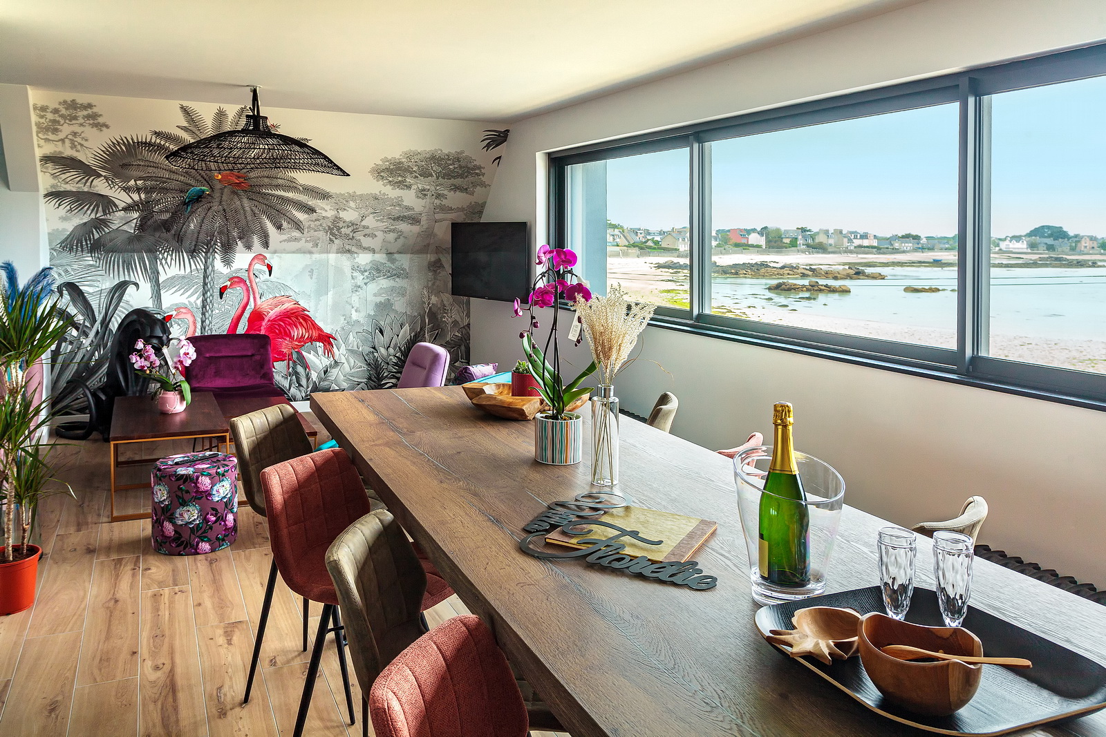 C'est au cœur de la station balnéaire bretonne, réputée pour la beauté exceptionnelle de ses baies aux eaux turquoise et ses plages de sable fin, que Patrick et Sylvie Voisin, originaires de Brest, ont ouvert en 2021 leur maison d’hôtes raffinée. « Nous cherchions depuis deux ans un endroit en bord de mer, “les pieds dans l’eau”, souligne Patrick. À la fin de la visite de cette bâtisse qui date de 1961, année de ma naissance, nous avons dit « oui » tout de suite et signé le 14 février, jour de la Saint-Valentin. Anecdote : ma maman a travaillé au Castel Régis, un hôtel-restaurant emblématique des années 50 qui se trouvait juste en face ! » Neuf mois plus tard, naissait La Villa Florélie, une contraction des prénoms de leurs enfants, Florent et Aurélie.